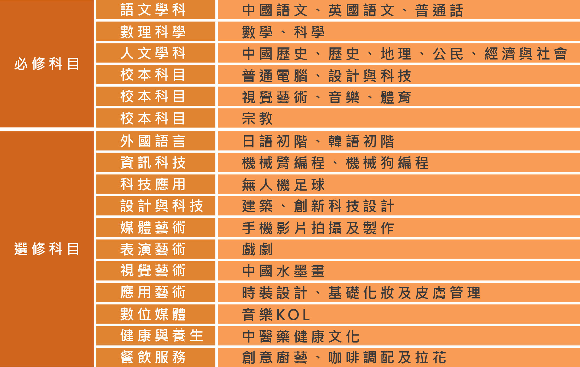 為了照顧學生的學習多樣性,因應學生不同的能力及興趣,本校設有初中及高
